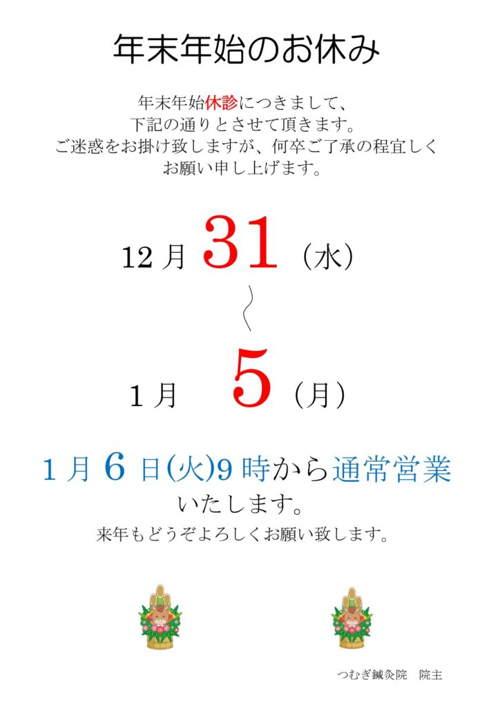 新年は1月6日(火)より通常通り開院いたします。